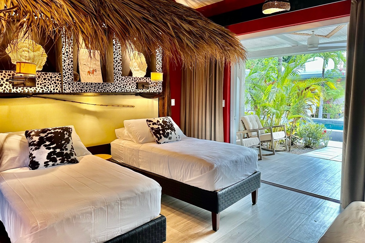 This villa was designed so every suite feels like its own private hotel room, complete with Smart TVs, spa-style bathrooms, private patios, and flexible bedding options to meet your group’s needs.