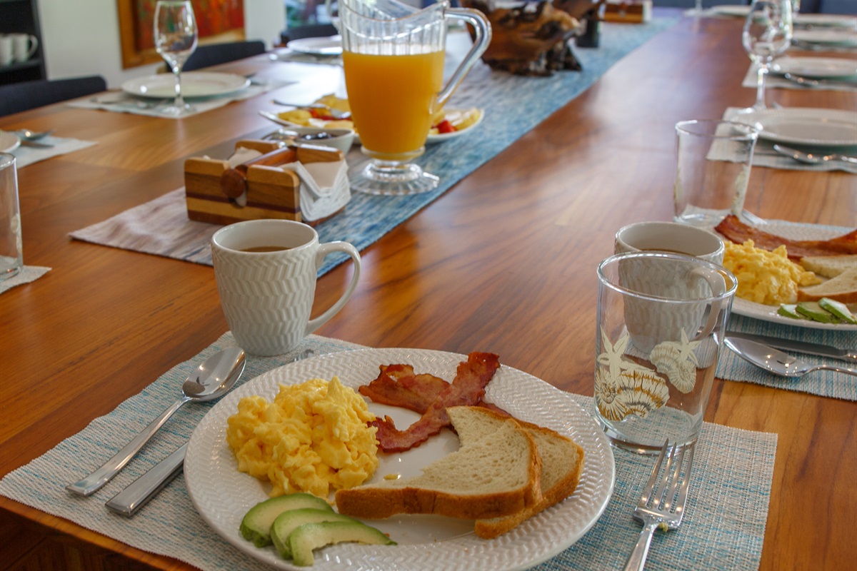Breakfast Prepared Daily with coffee, fruit, and a variety of morning favorites.