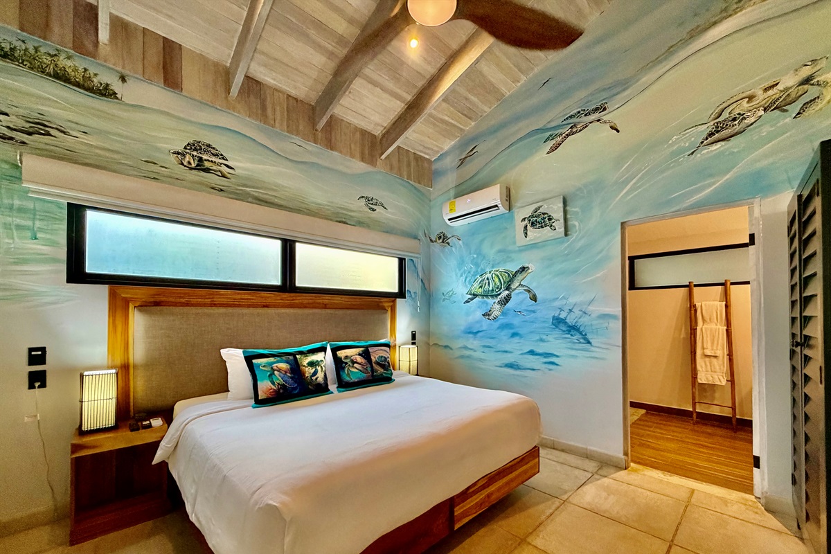 Master Suite #1: King bed, queen sofa bed, en suite spa bathroom, Smart TV, private patio.
