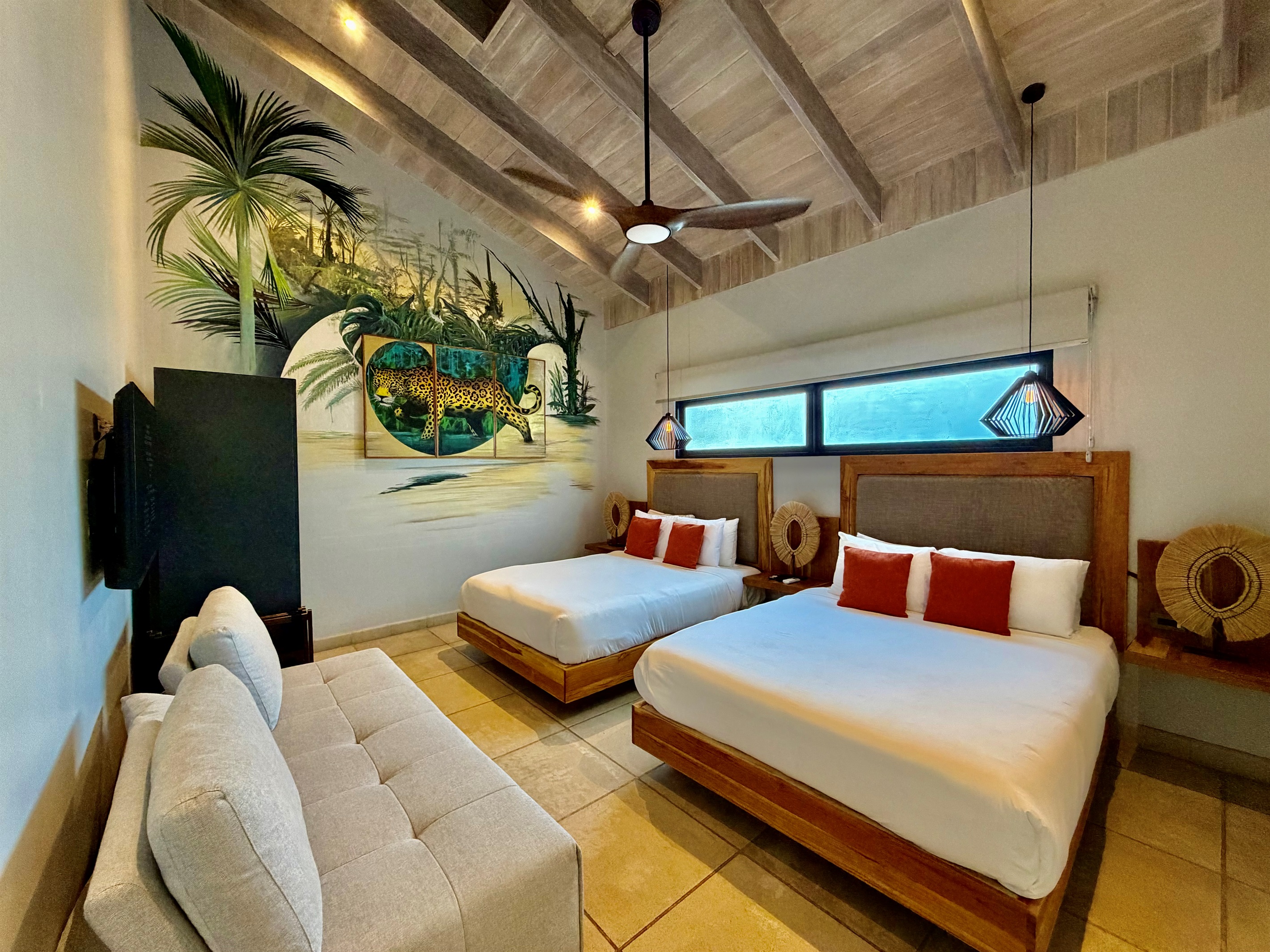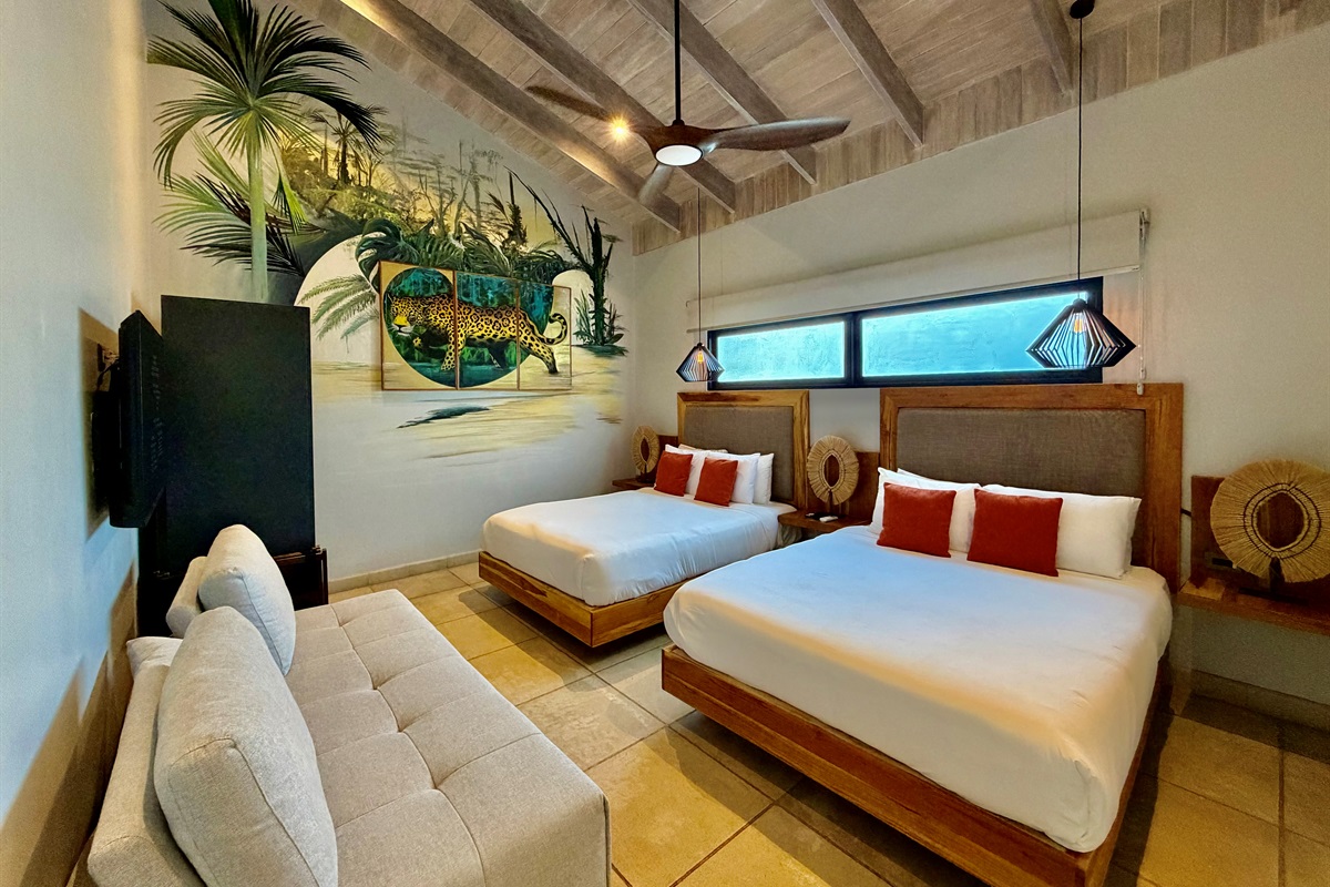 Suite #9: 2 full-size beds + 2 twin XL beds, en suite spa bathroom, Smart TV.