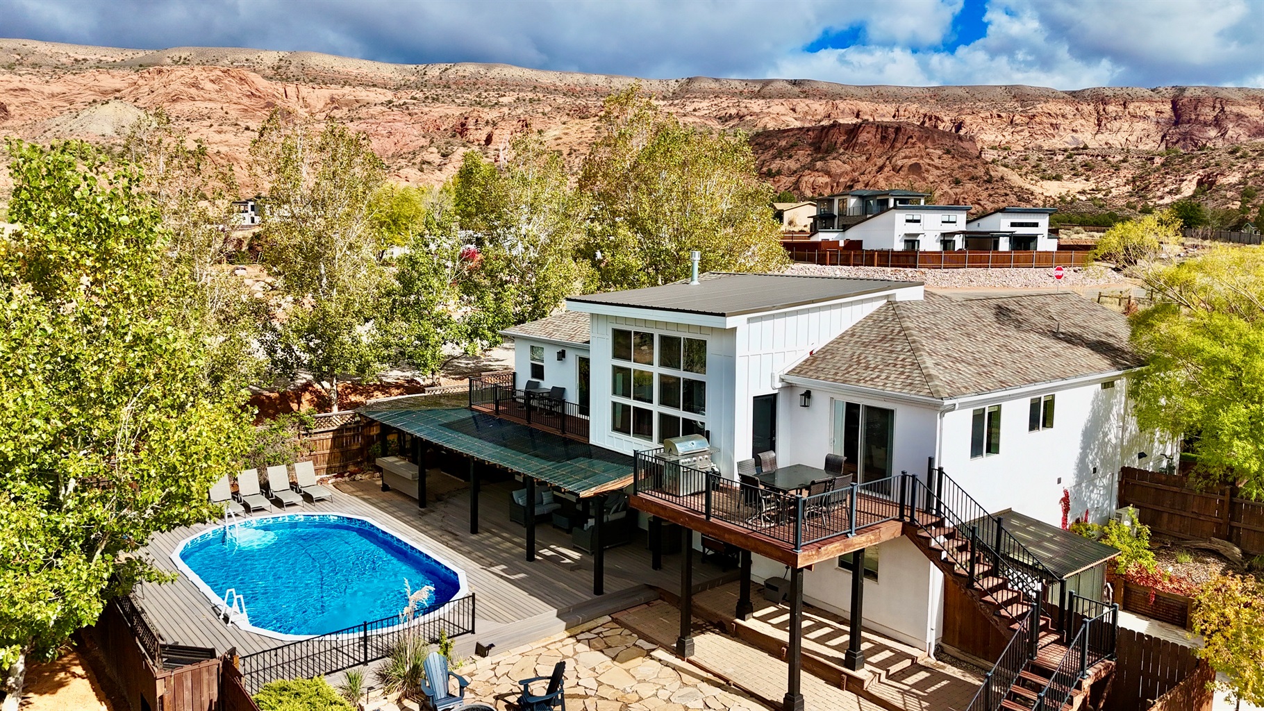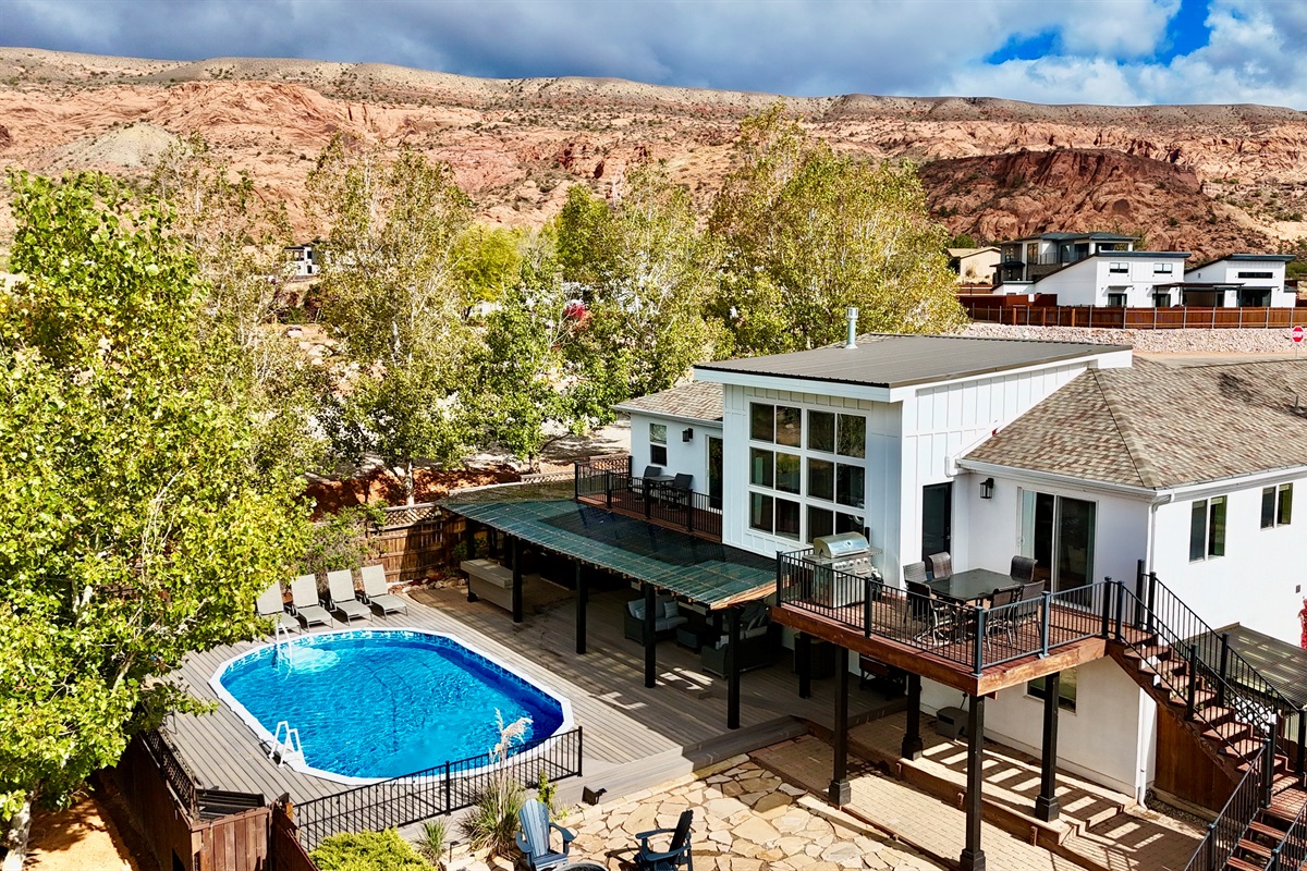 Perfectly located just 15 minutes from downtown Moab, 20 minutes to Arches National Park, and 20 minutes to Canyonlands National Park, Desert Paradise offers the ultimate base for your red rock adventure. Multiple patios, a fire pit, and a large yard for games or events make outdoor living as memorable as the desert views.